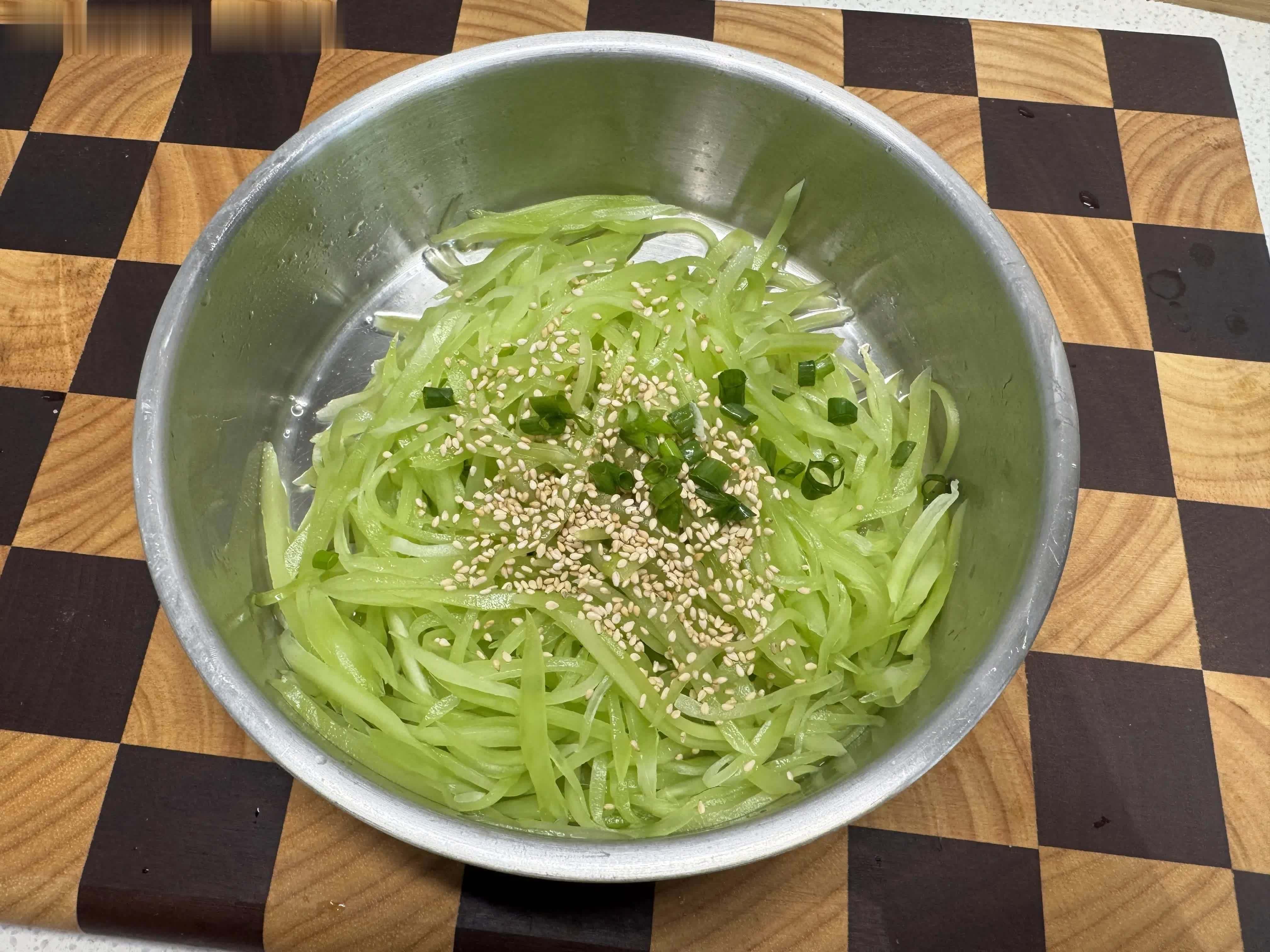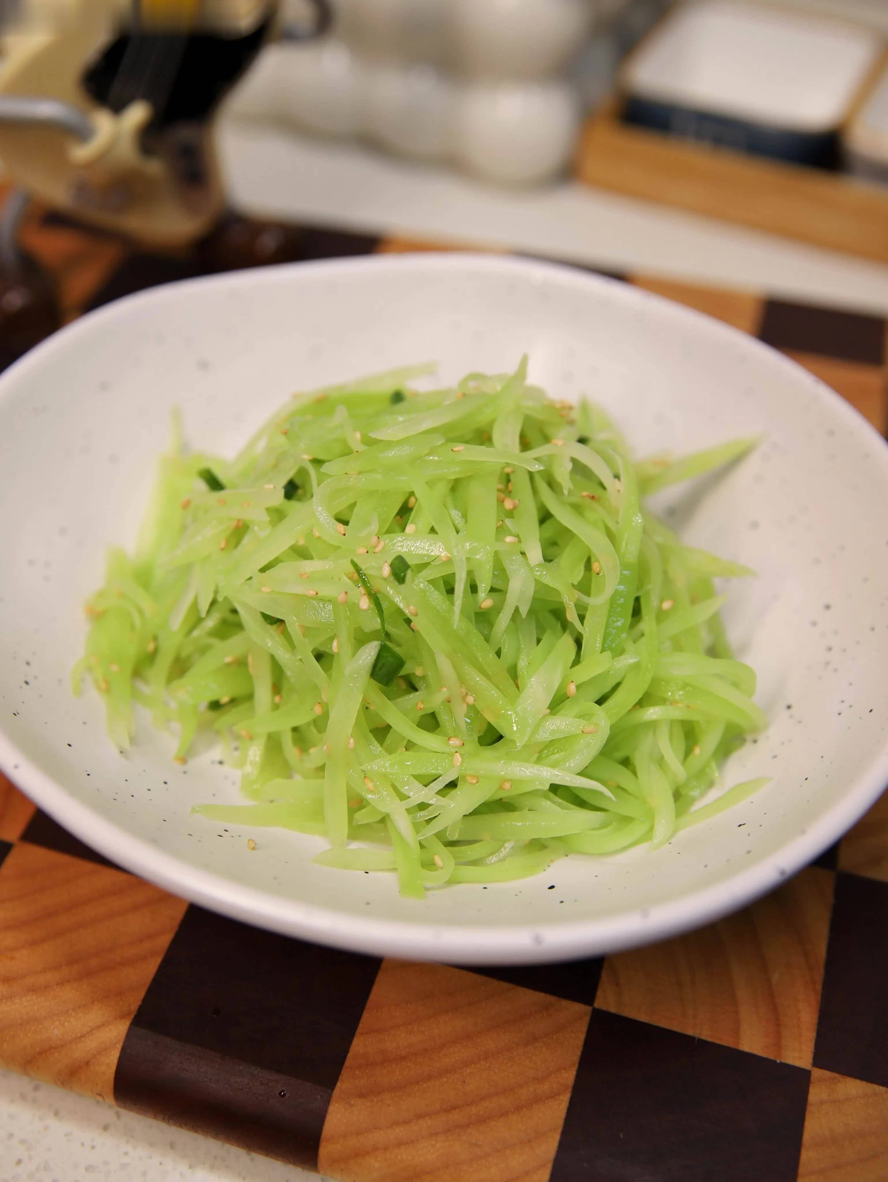 春天的莴笋翠绿鲜嫩,是不可辜负的时令鲜味,不用复杂的烹饪方法,撒上醇香的芝麻,简单一拌便是一道清新的春日小菜,温润脆嫩,一口抚慰身心。