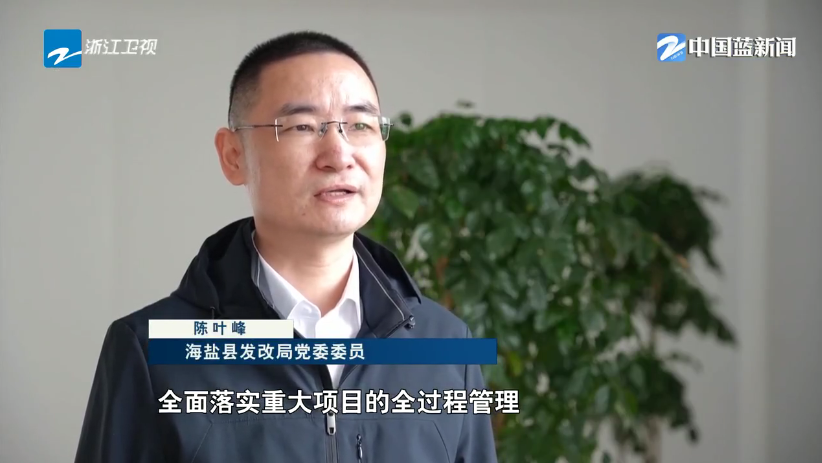 海盐县发改局党委委员 陈叶峰:全面落实重大项目的全过程管理,同时我们又紧盯重大项目的开工、建设、投运这三个关键性的节点。到目前为止,我县的省“千项万亿”重大项目开工率已达到100%,投资完成率已接近120%。